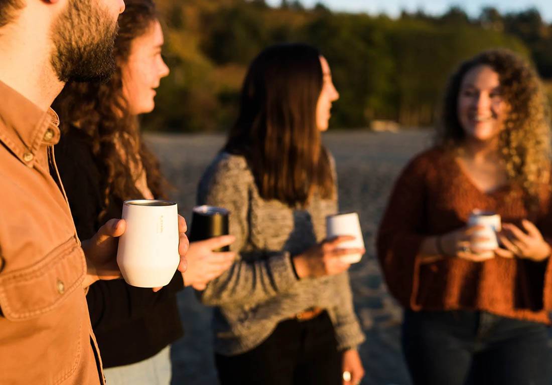 I love this mug for its sleek look and angular profile. The lid with a slide lid makes it great for a cortado to go, and it also is my favorite for car camping nights to safely keep my wine form getting too warm while sitting by the camp fire Easy choice! Great mug!