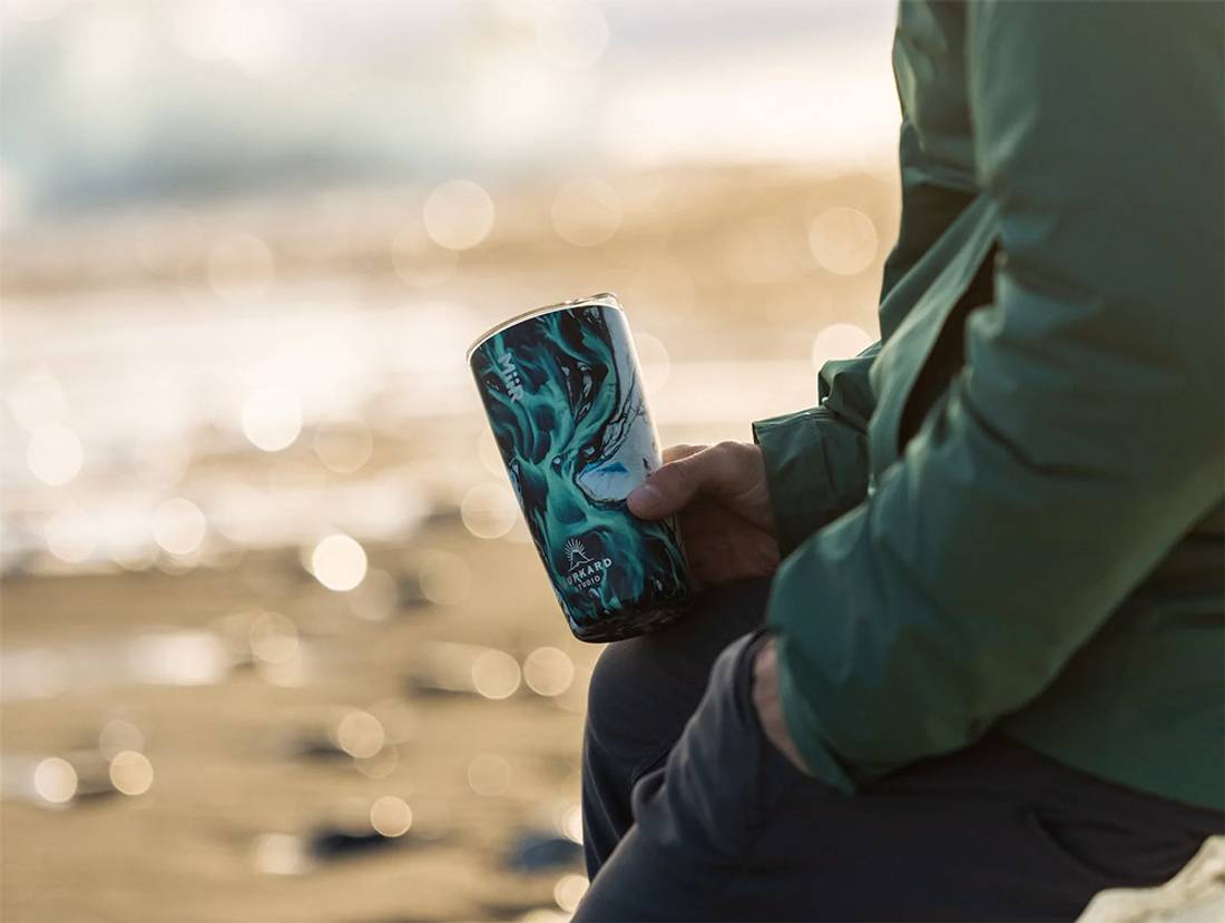 It keeps my drinks the proper temperature and I like the slide-cover top lid. The description says it has the powder coat finish, but I thought it would have a better texture. This is kind of smooth, so I can see myself dropping it from slipping out of my hand. Time will tell! Overall, I love Chris Burkard's work and I love the mission of MiiR, so the tumbler is a perfect combo for me!