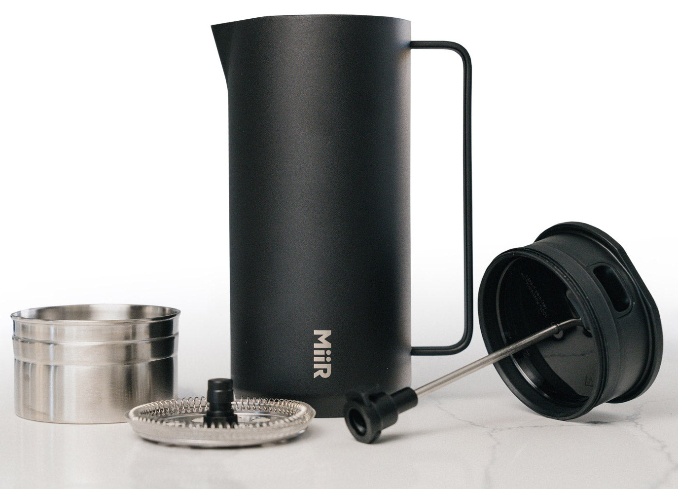 The quick-release grounds basket easily pops out of the press, so you can dial your brew time down to the second. And with fully insulated stainless steel, you can take your time enjoying your morning cup. With its sealable top, the New Standard French Press keeps coffee hot for hours at a time.
