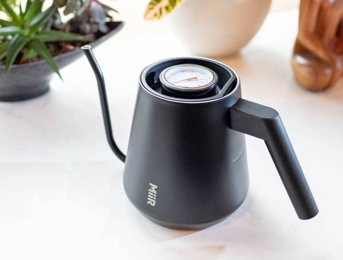 This is a great addition to our coffee making collection. I dig the built in thermometer that gives me the ideal temperature for a lovely and tasty cup of brew. I feel spoiled by the quality of coffee using the kettle. It also compliments all the other Miir products we have in the household, including a number of camp cups, the Pourigami, coffee canister, cold brew filter, wine glasses and both the wide and narrow mouth bottles. I am a big fan of Miir!