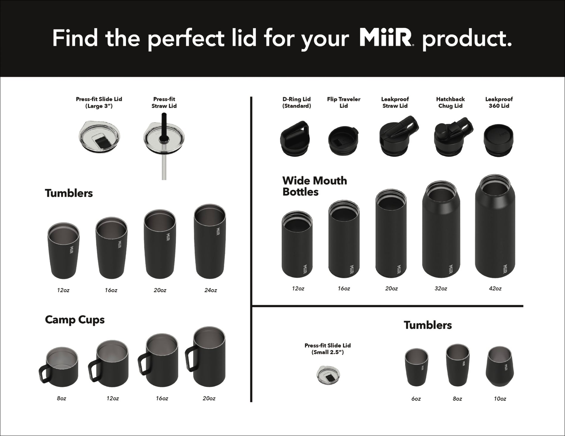 - Available in 2 sizes to fit all MiiR Tumblers, all Camp Cups and Lowball & Highball